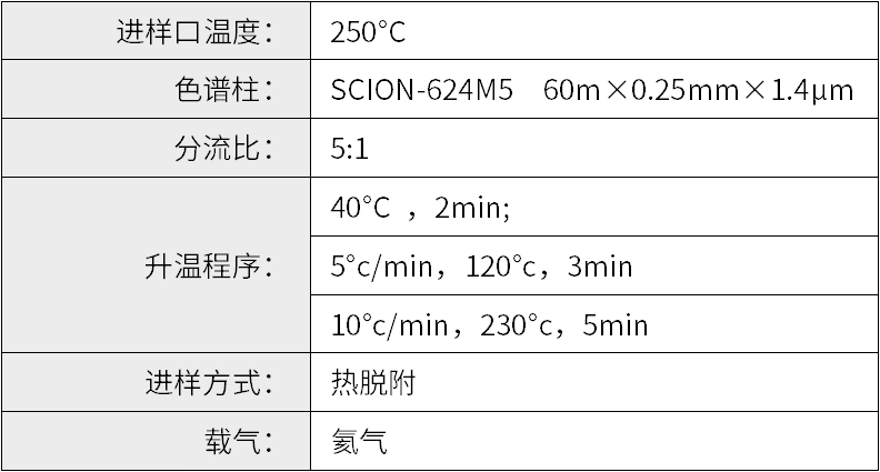 实验部分本文使用赛里安气质联用仪搭配热脱附仪检测空气中的挥发性有机物,参考HJ 644-2013标准,Scan扫描方式,根据保留时间、质谱图及特征离子对挥发性有机物标准品进行定性,高浓度样品用Scan扫描方式内标法定量。低浓度样品用Sim扫描方式内标法定量,符合标准的要求。