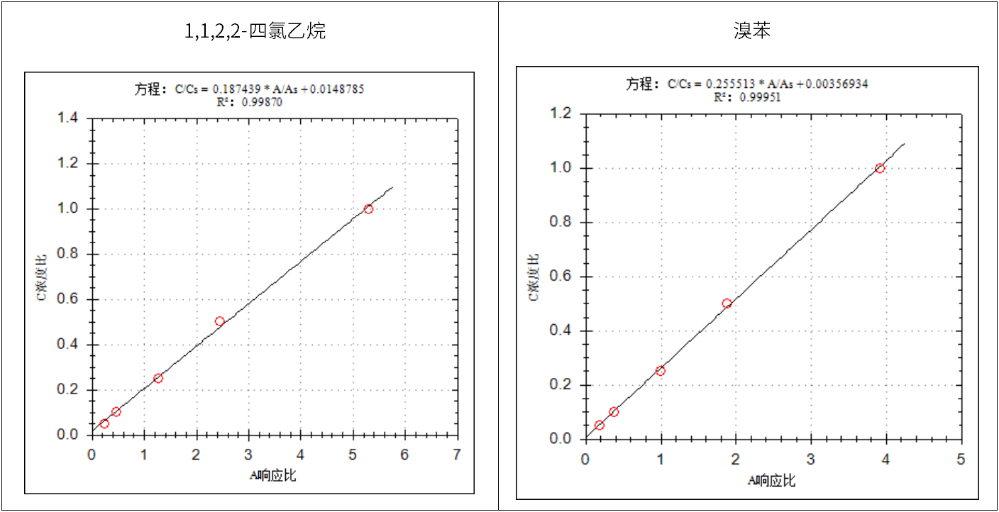 ▲ 图2 1,1,2,2-四氯乙烷与溴苯标准曲线