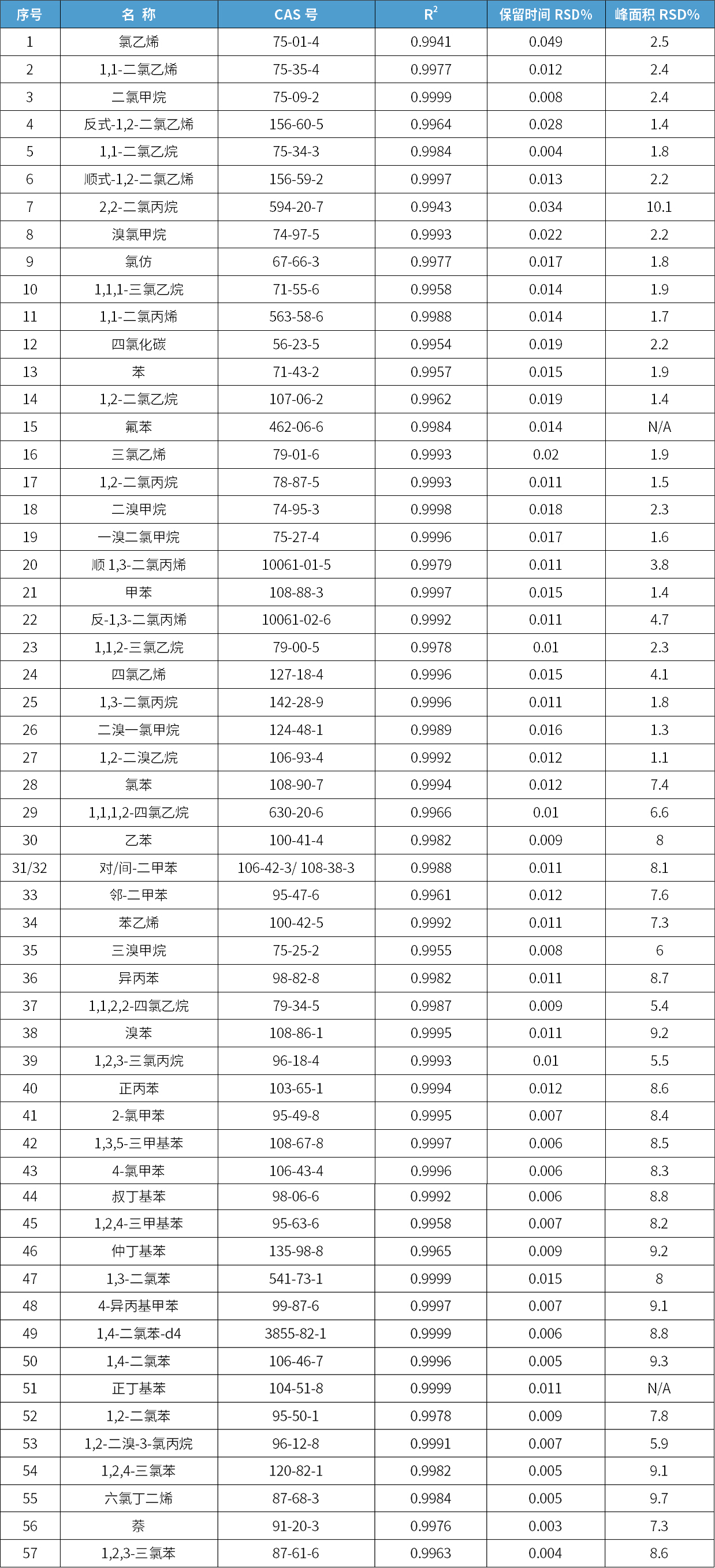 本应用采用了赛里安气质联用仪搭配热脱附仪测试环境空气中的挥发性有机物,该方法具有灵敏度高,重复性良好,线性良好,检测结果准确可靠、操作方便等优点,同时完全满足于国标HJ 644-2013挥发性有机物的测定吸附管采样-热脱附/气相色谱-质谱法标准的要求。