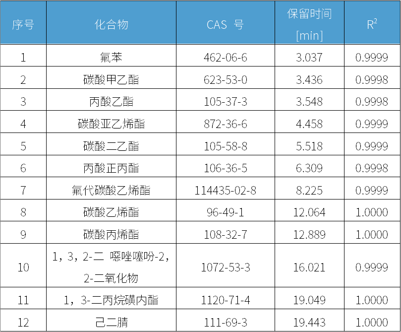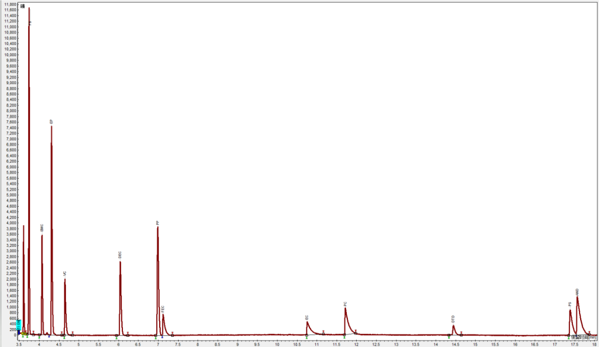 使用赛里安456i气相色谱仪搭配FID检测器对锂电池电解液中12种有机化合物进行检测。该方法满足于锂电池电解液组分分析要求,具有灵敏度高,重复性好,线性好,检测结果准确可靠操作方便等优点。