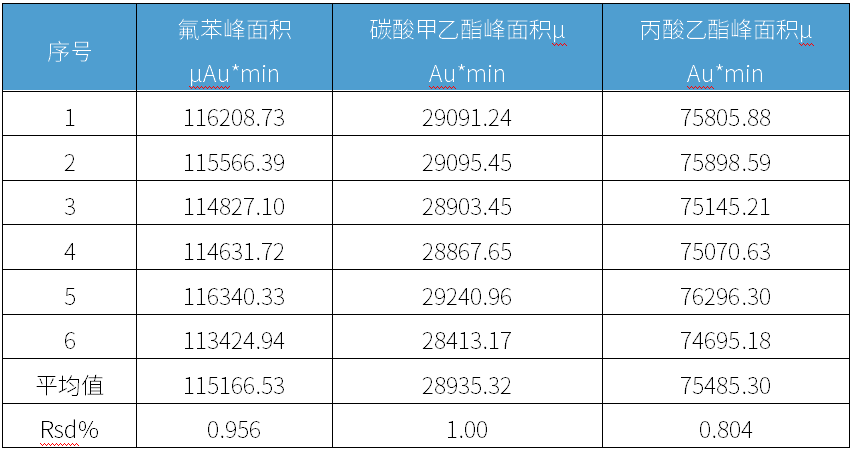 12种有机化合物峰面积RSD%≤1.18%(n=6)。