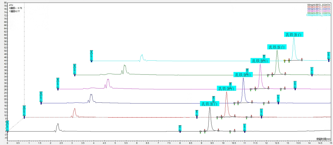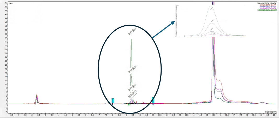 ▲图1 乳铁蛋白50mg/L示例色谱图