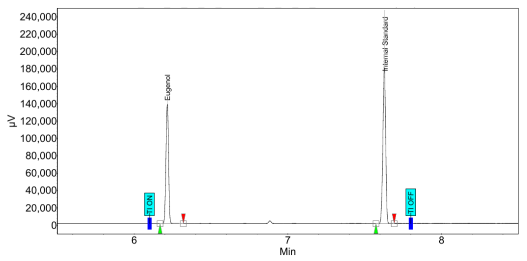 ▲图2 丁子香酚(添加十六烷内标)色谱图